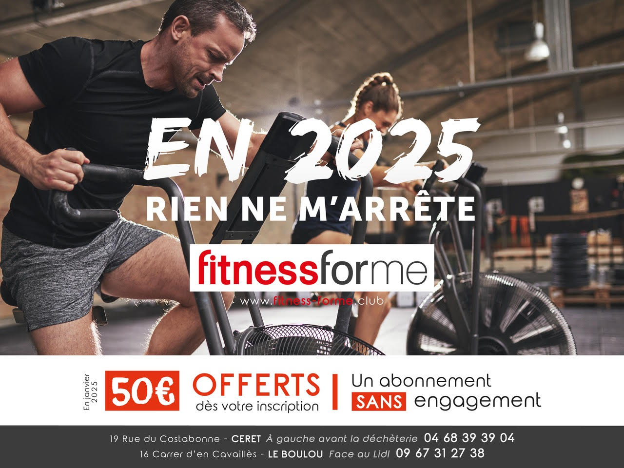 Venez découvrir votre salle de sport à Céret, située dans la zone Oulrich, à proximité de Intermarché, ouverte 24h/24 et 7j/7.